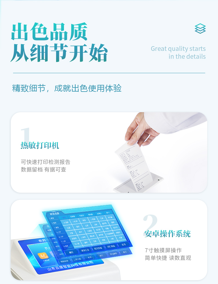 7、打印機(jī)采用串口5v打印,可選擇手動打印或者自動打印,三分鐘出打印結(jié)果,打印格式為檢測人姓名、吸光度差值、檢測時間、檢測機(jī)構(gòu)、樣品名稱及結(jié)果判定。