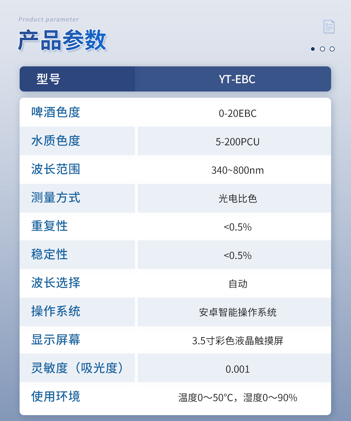 啤酒色度測定儀采用鉑-鈷標(biāo)準(zhǔn)色度法,用于測定溶解狀態(tài)的物質(zhì)所產(chǎn)生的顏色,儀器采用國家標(biāo)準(zhǔn)GB5750中所規(guī)定的鉑-鈷色度標(biāo)準(zhǔn)溶液進(jìn)行標(biāo)定,采用鉑-鈷色度作為計量單位。