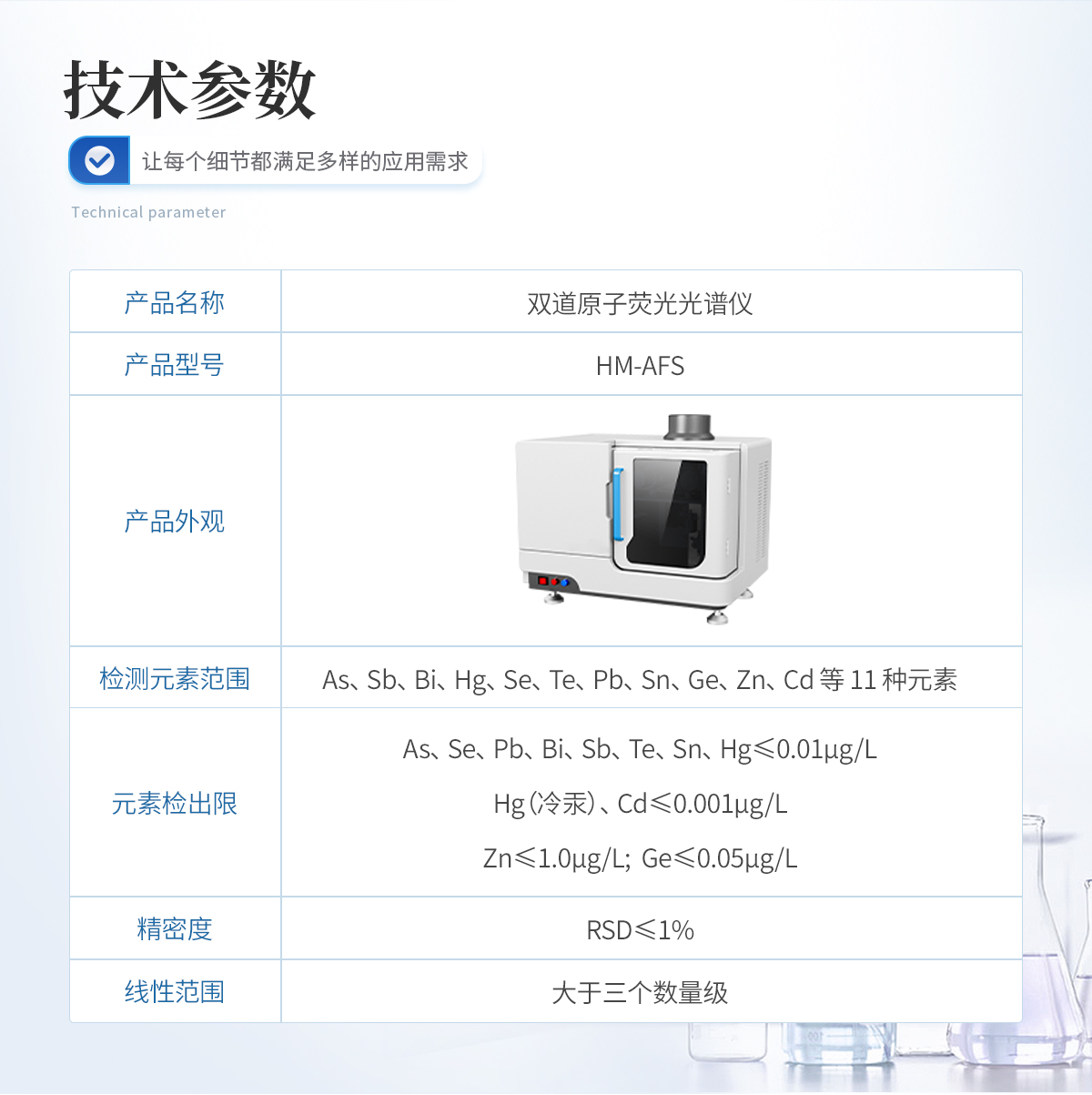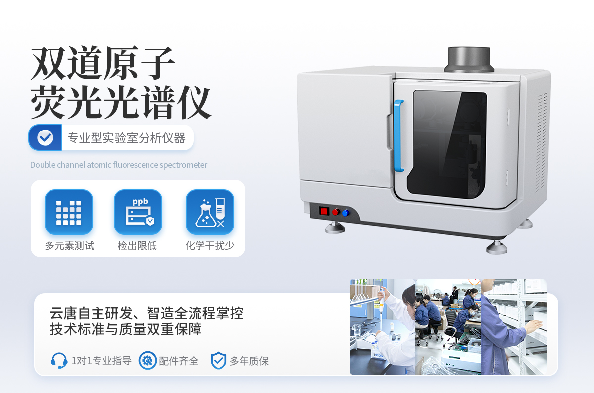 雙道原子熒光光譜儀廣泛應(yīng)用于汞(Hg)、砷(As)、銻(Sb)、鉍(Bi)、硒(Se)、碲(Te)、鎘(Cd)、鍺(Ge)、鉛(Pb)、錫(Sn)、鋅(Zn)等11 種元素的痕量、超痕量分析,體積小巧,性能穩(wěn)定,操作簡(jiǎn)單。