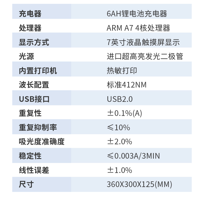 7、高速熱敏打印機,實時打印檢測結果。內置大容量電池,便于現場執法檢測。
