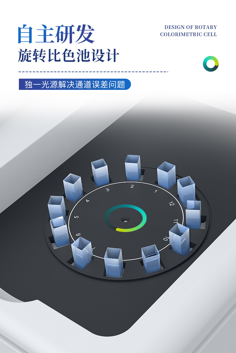 ④ 儀器采用精密旋轉比色池設計,使用同光源校準精度,檢測結果更為準確**。