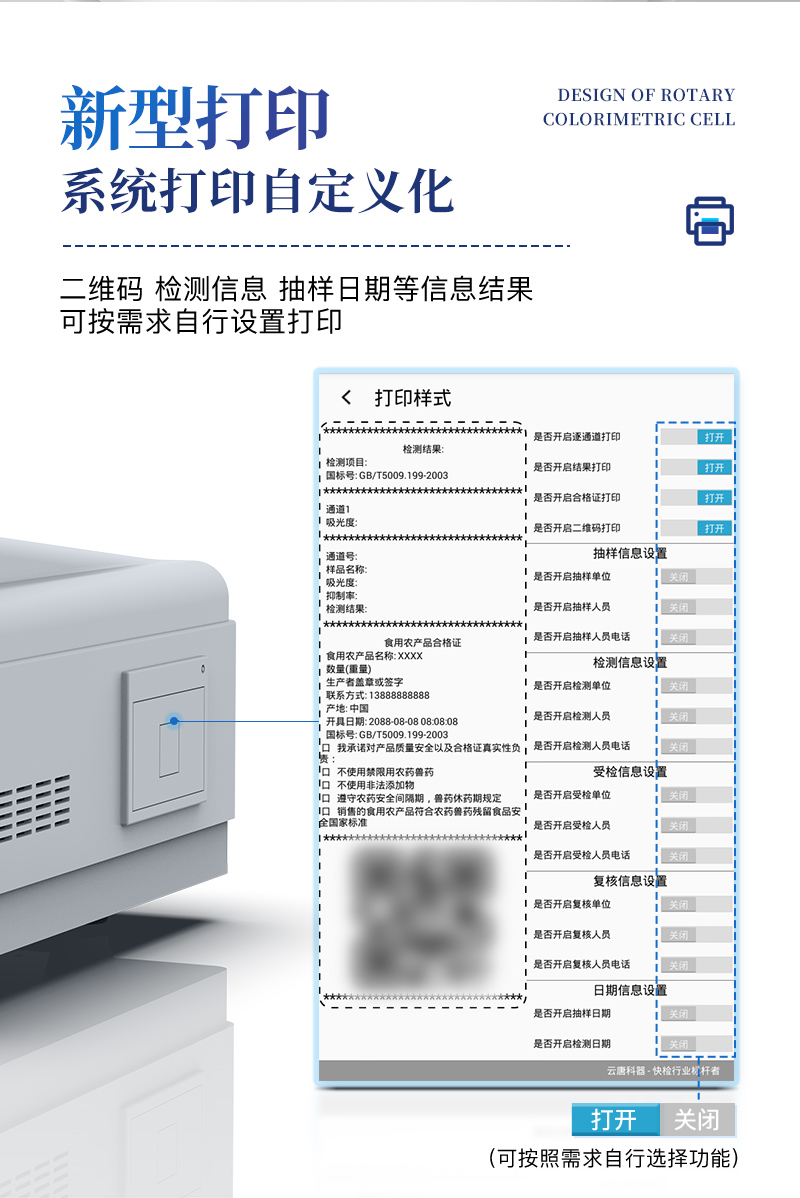 ⑥ 設備自帶打印功能,可對樣品信息及檢測結果無限次隨意打印。
