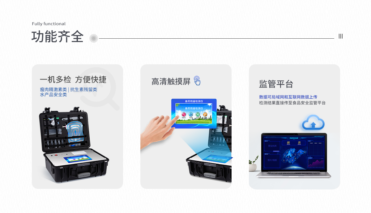 6、一體化主機(jī),包含食品安全檢測(cè)模塊、多通道農(nóng)藥殘留檢測(cè)模塊、膠體金免疫層析檢測(cè)模塊。