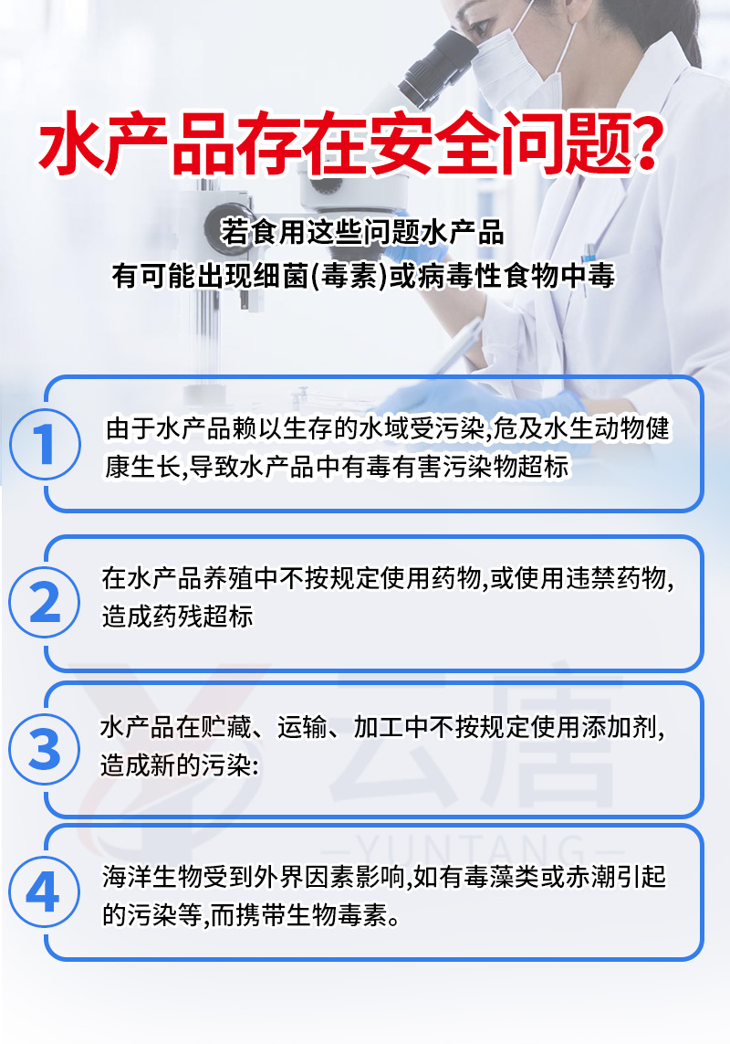 孔雀石綠、呋喃唑酮(AOZ)、呋喃它酮( AMOZ )、呋喃妥因(AHD)、呋喃西林(SEM)、氯霉素、磺胺類、喹諾酮類、四環素、金霉素、土霉素、恩諾沙星作為一種**廣譜抗生素,常用于動物各種傳染性疾病的治療,對多種病原菌有較強的抑制作用,曾在水產和畜禽養殖業中得到廣泛應用,同時也帶來了水產品和畜禽中氯霉素殘留的嚴重問題。氯霉素存在嚴重的毒副作用,能抑制人體骨髓造血功能,引起人類的再生障礙性貧血,粒狀自細胞缺乏癥,新生兒、早產兒灰色綜合癥等疾病,低濃度的藥物殘留還會誘發致病菌的耐藥性,因此動物食品中的氯霉素殘留對人類的健康構成了巨大威脅。本產品利用免疫層析技術原理來定性檢測魚、蝦、雞、豬、牛等樣品中氯霉素的殘留,具有操作簡單、檢測時間短、可通過肉眼直接判讀結果的特點,適用于各類企業、檢測機構的現場快速檢測。