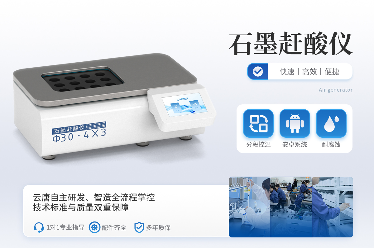 石墨趕酸儀,具有快速、**、便捷等優點,適用于食品、藥品、質檢、環保、疾控、化工、高校等行業樣品的處理。可用于微波消解的預處理和趕酸處理,是原子吸收、原子熒光、ICP-AES等分析儀器的理想配套產品,更適合與微波消解儀配套使用。