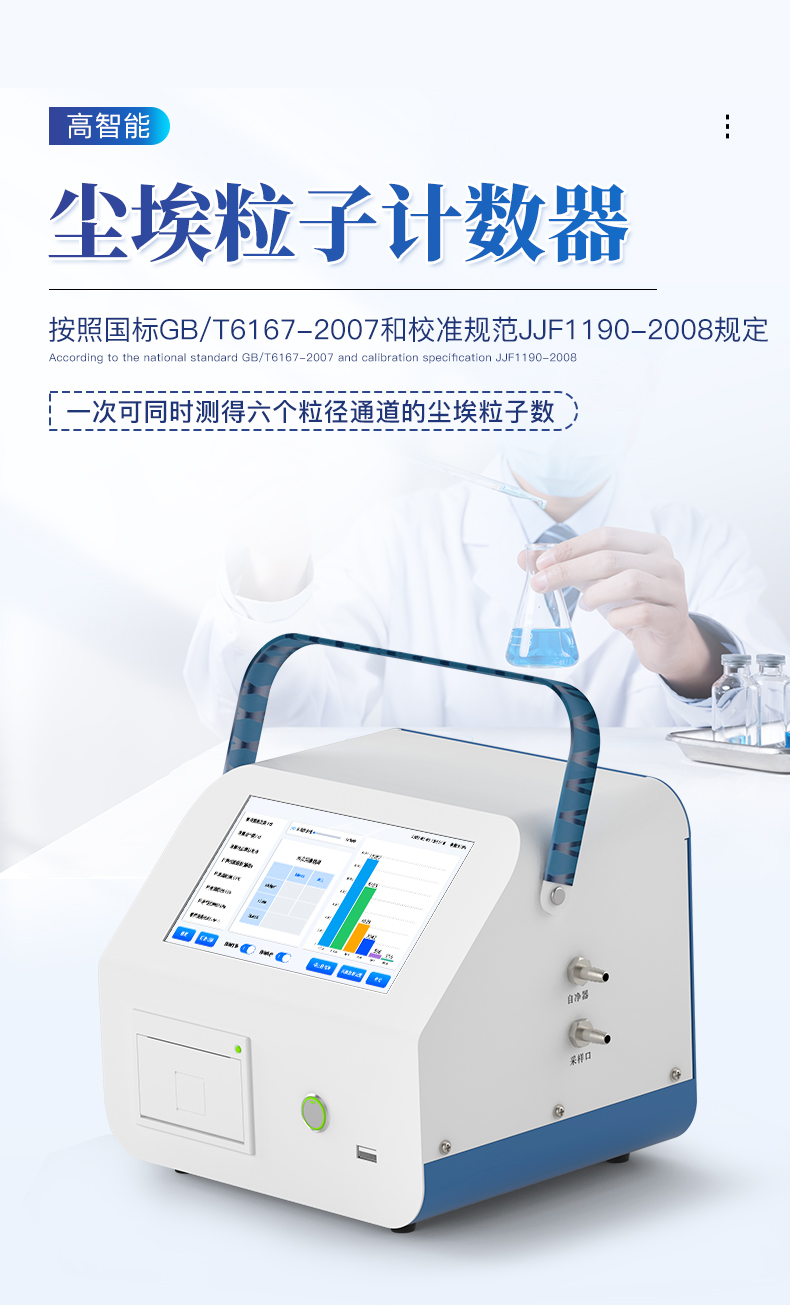 智能塵埃粒子計(jì)數(shù)器,其置信度測(cè)量檢定標(biāo)準(zhǔn)按照國標(biāo)GB/T6167-2007和校準(zhǔn)規(guī)范JJF1190-2008規(guī)定的條件,對(duì)凈化級(jí)別進(jìn)行自動(dòng)判斷。一次采樣可同時(shí)測(cè)得六個(gè)粒徑通道的塵埃粒子數(shù),并同時(shí)顯示六個(gè)粒徑通道粒子的數(shù)目及其變化情況。