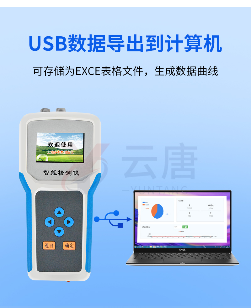 6、能存儲指定各個點的土壤溫度值、水分值,上位機軟件功能強大,隨時可以通過USB接口將記錄中的數據導出到計算機上,并可以存儲為EXCE表格文件,生成數據曲線,以供其它分析軟件進一步進行數據處理。