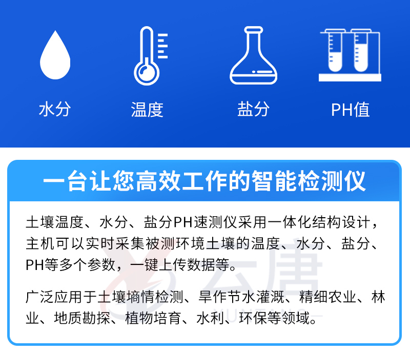 土壤水分測定儀采用FDR頻域反射原理,快速準確測量土壤中含水量,可對多處樣地、不同土壤深度的水分含量進行快速檢測和長期連續(xù)監(jiān)測。廣泛應用于土壤墑情檢測、旱作節(jié)水灌溉、精細農業(yè)、林業(yè)、地質勘探、植物培育等領域。
