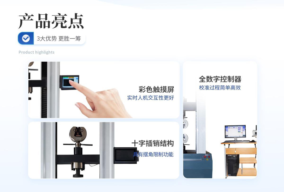 | 1、采用高精度、全數字調速系統及精密減速機,驅動精密絲杠副進行試驗,實現試驗速度的大范圍調節,試驗過程噪音低、運行平穩。 | 2、萬向節采用十字插銷結構,而且具有擺角限制功能,一方面便于試樣夾持,保證試驗同心度,另一方面很好的消除了不規則試樣對傳感器的影響。 | 3、觸摸鍵操作方式,液晶顯示器實時顯示。顯示界面可顯示試驗方法選擇界面、試驗參數選擇界面、試驗操作及結果顯示界面和曲線顯示界面,方便快捷。 | 4、可實現試樣裝夾時橫梁快慢升降調整,具有過流、過壓、過載等保護裝置。 | 5、選配微機接口,可外接微機實現試驗過程的控制及數據的存儲、打印。 |