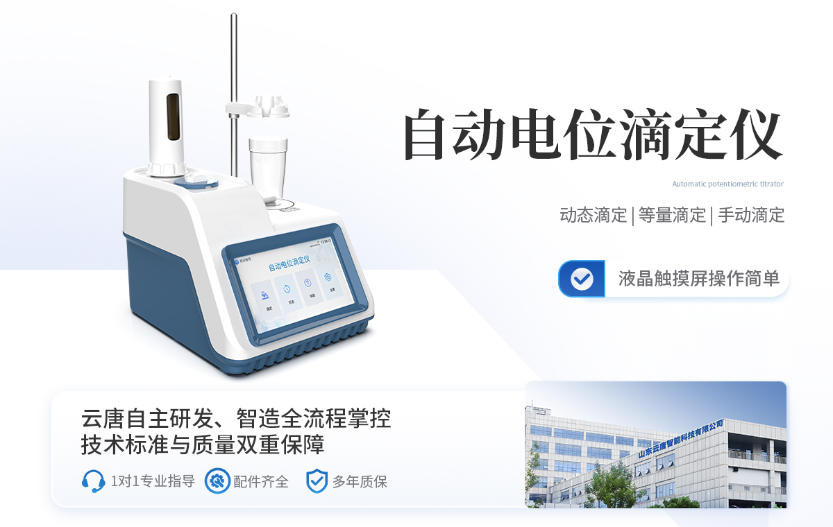 | 自動電位滴定儀是一種用于化學分析的精密儀器,他通過自動添加滴定劑來確定樣品中特定成分的濃度。該儀器基于電位滴定原理工作,即根據(jù)在滴定過程中電池電動勢的變化來確定滴定終點的一款滴定設(shè)備。設(shè)備滿足國家檢定規(guī)程JJG 814-2015《自動電位滴定儀》儀器級別中的0.05級別,即儀器**示值誤差為±1.5%,儀器示值重復(fù)性≤0.2% |